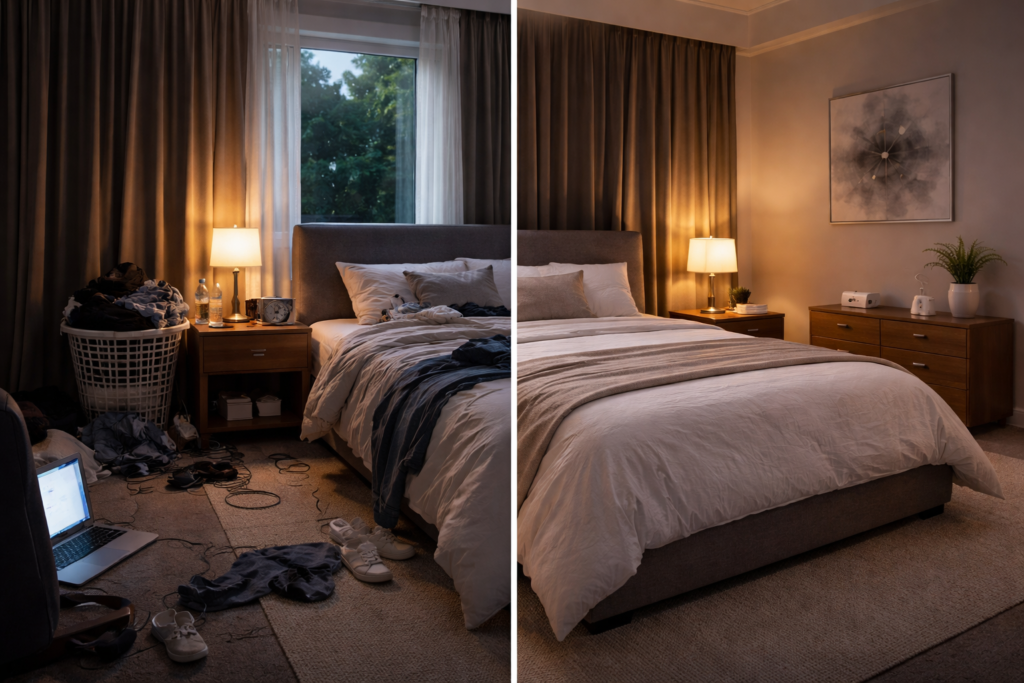 If your room feels overwhelming, this guide on why a clean bedroom improves sleep quality explains why it matters.